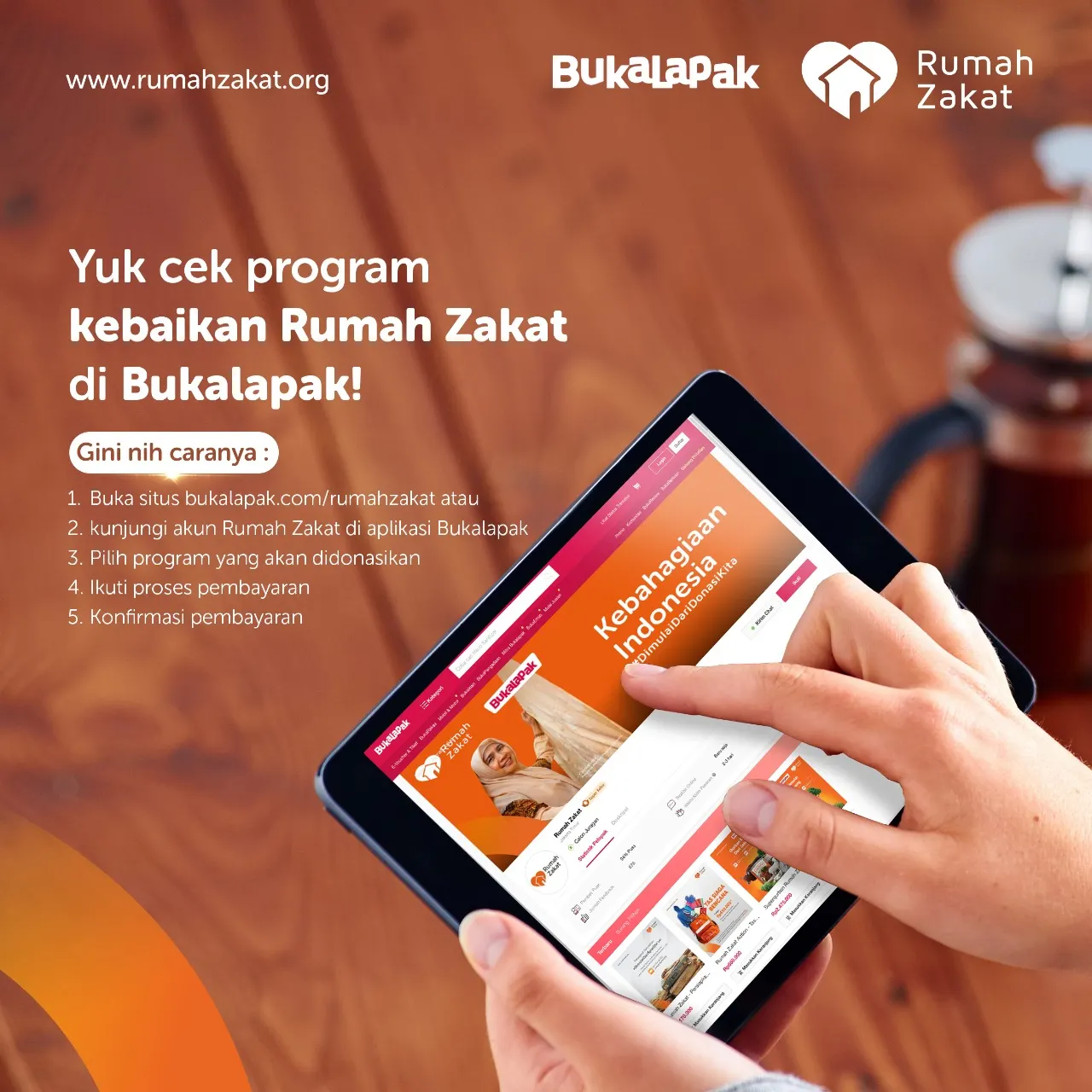 Foto: Dok Rumah ZakatSelain Tokopedia, Bukalapak juga memiliki layanan BukaZakat yang bisa digunakan penggunannya untuk membayar zakat fitrah , zakat maal dan zakat profesi.