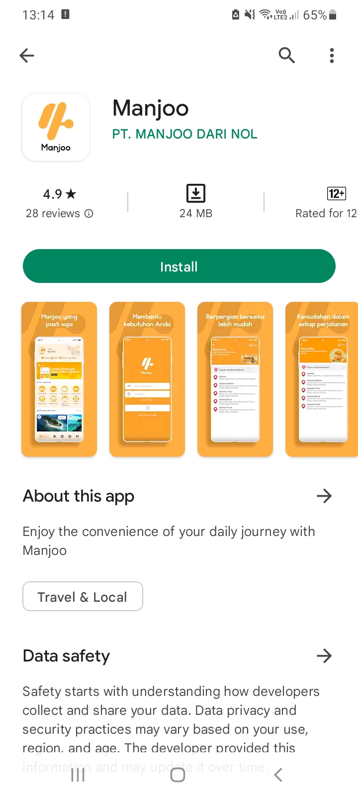 Tampilan aplikasi Manjoo di Google Play. (Foto: Dokumentasi Pribadi)