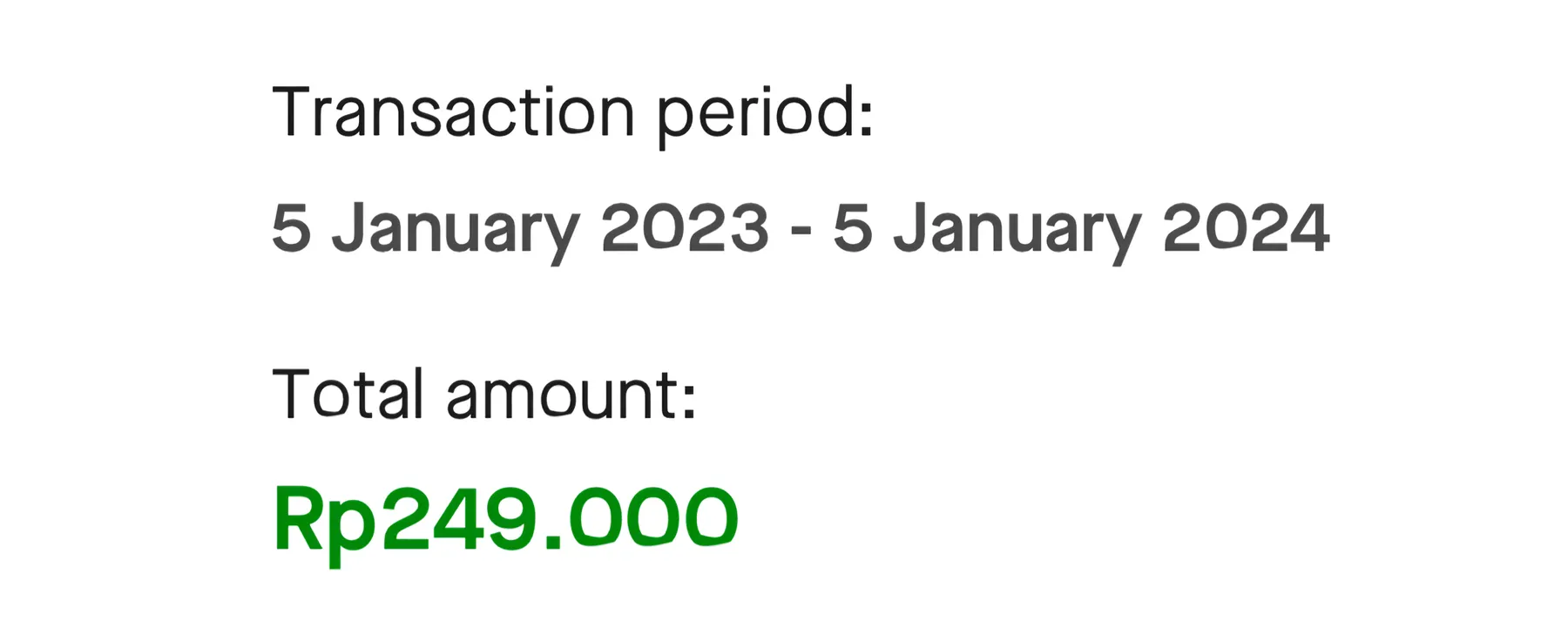 Di aplikasi Gojek, terdapat salah satu fitur yang memungkinkan pengguna untuk melihat total riwayat transaksi pada beberapa layanan Gojek baik itu Gofood ataupun Goride, dalam kurun waktu tertentu, yang bisa diatur agar menampilkan total riwayat transaksi selama setahun. Dari fitur yang sudah disediakan ini, pengguna bisa melihat total nominal yang telah dikeluarkan selama setahun untuk mengakses layanan Gojek.