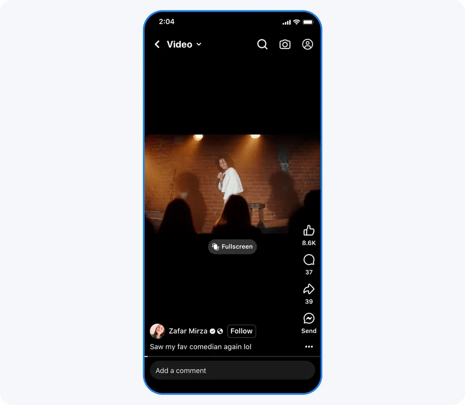 Format baru ini akan menampilkan video vertikal secara otomatis. Namun, Facebook juga akan menghadirkan opsi layar penuh untuk video yang dibuat untuk dilihat secara horizontal. Pengguna cukup membalikkan ponsel untuk menontonnya dalam tampilan lanskap.