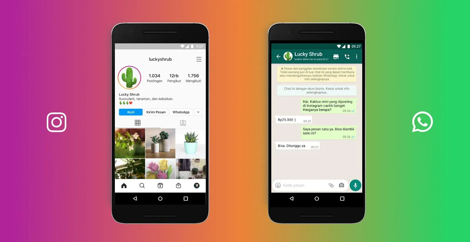 Banyak pelaku bisnis kecil dan menengah saat ini menggunakan Instagram dan Facebook. Dengan menggunakan Alat Bantu Bisnis, Anda dapat menambahkan tombol WhatsApp di akun Facebook atau Instagram sehingga ketika pelanggan mengklik tombol tersebut, mereka dapat langsung memulai percakapan di aplikasi WhatsApp Bisnis dengan mudah. Hal ini akan memudahkan pelanggan yang sedang mencari informasi tentang bisnis Anda di platform tersebut untuk langsung menghubungi Anda via WhatsApp, bertanya atau melakukan pemesanan. Untuk menemukan pelanggan baru, Anda juga dapat membuat iklan di Facebook dan Instagram yang langsung membuka percakapan WhatsApp ketika diklik. Ini adalah cara yang efektif dan ampuh untuk menarik pelanggan baru dan memudahkan mereka untuk berkomunikasi dengan bisnis Anda.