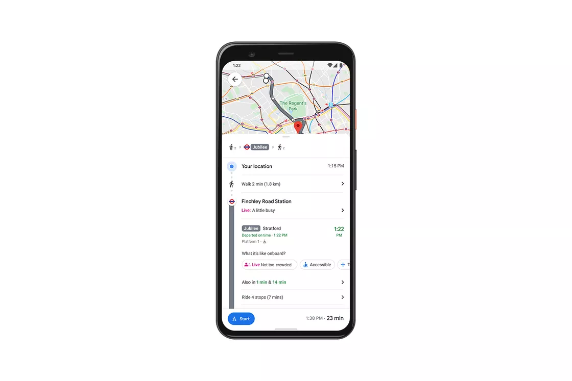 Google juga memberikan informasi mengenai seberapa ramai transportasi umum. Informasi ini di-update secara nyata dengan umpan balik dari pengguna Google Maps lain, sehingga bisa membantu pengguna untuk menghindari rute kereta atau bus jika dirasa sudah terlalu banyak penumpang di dalamnya.