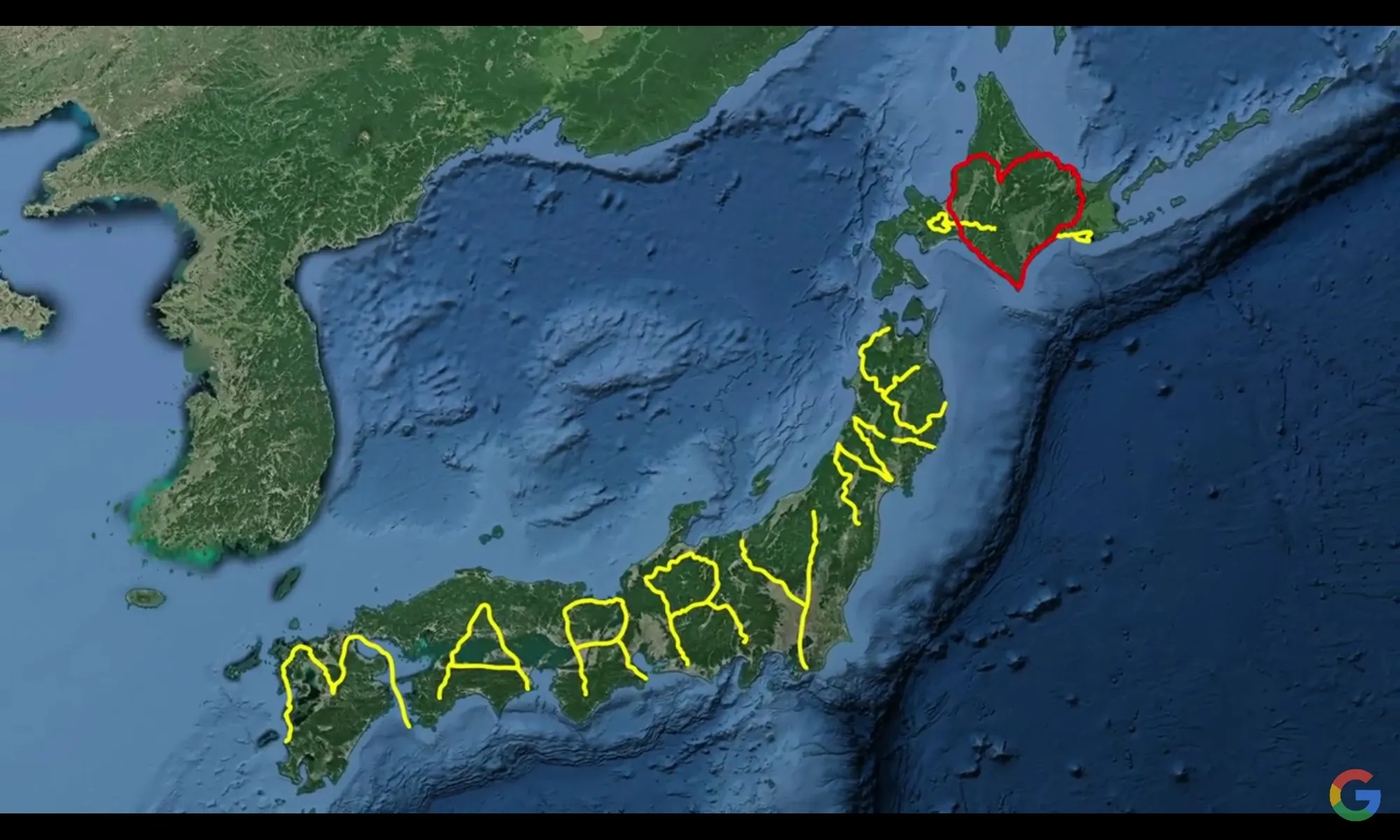 "Hi, aku Yassan. Aku membuat GPS ART menggunakan Google Earth. Pada tahun 2008, aku berpikir untuk mengirimkan kekasihku sebuah pesan kejutan dengan bepergian melintasi Pulau-Pulau di Jepang," pungkas Yassan pada video di YouTube Google berjudul "How an Artist used Google Earth to Craft a Record-setting Wedding Proposal".