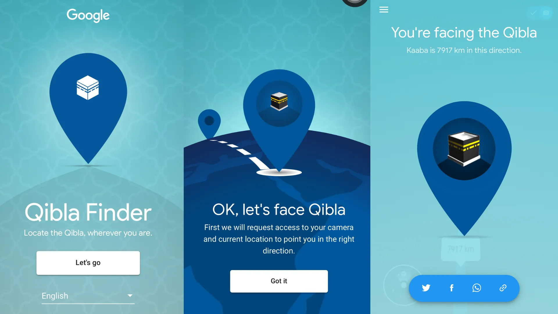 Hanya dalam beberapa saat, pengguna segera mengetahui arah kiblat. Penujuk yang diberikan juga diakui sangat akurat, mengingat Qibla terhubung pada Google Maps dengan kemampuan muktahir.