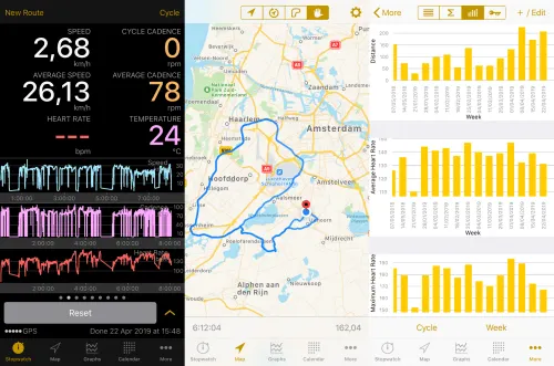 Aplikasi ini mampu mengubah smartphone kamu menjadi komputer sepeda terbaik. Fitur yang ditawarkan sangat lengkap, meliputi perhitungan jarak tempuh, jumlah kalori yang terbakar, hingga rute yang nantinya akan kamu lalui. Canggihnya lagi, kamu dapat memulai atau berhenti berkendara hanya dengan menekan tombol yang terdapat di earphone (jika terhubung dengan earphone). Aplikasi ini juga terintergrasi dengan Google Maps untuk membantu kamu berkendara di area yang tidak dikenal. Cyclemeter tersedia gratis di iOS dan Android.