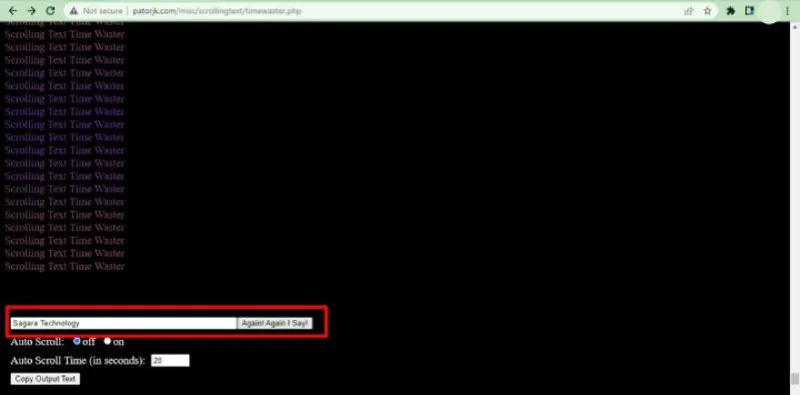 Nantinya halaman akan menampilkan scrolling teks sesuai yang kalian tulis