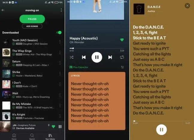 Kalian bisa mengetahui apakah lagu yang sedang kalian putar memiliki lirik atau tidak dengan melihat di bagian layar. Jika pada layar muncul lirik, kalian tinggal swipe up atau tarik ke atas untuk melihat sebagian lirik, atau bisa juga double tap untuk menampilkan semua lirik.
