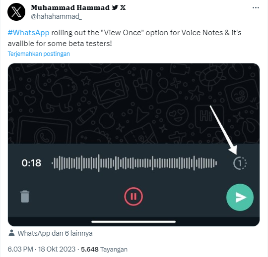 Salah satu pengguna X, Muhammad Hammad, membagikan pengalamannya pada platform tersebut terkait fitur pesan suara yang dapat otomatis terhapus.