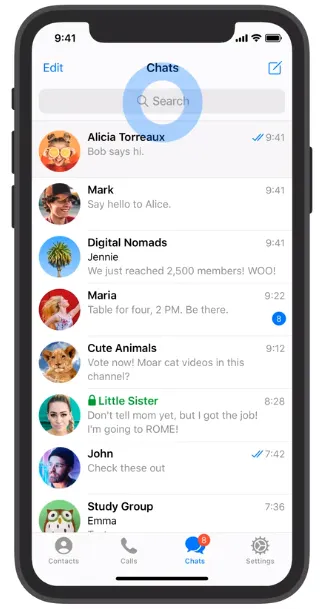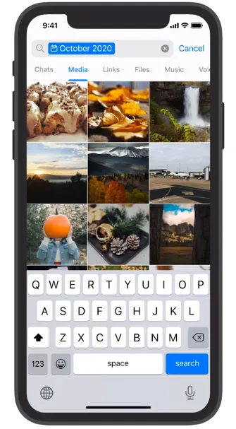 Fitur Search Filters kini terbagi menjadi enam kategori; Chats, Media, Links, File, Video, dan Voice messages. Pengguna bisa memasukkan kata kunci pencarian yang berkaitan dengan waktu, orang, grup/channel, dan bot tertentu. Setelahnya, filter tersebut akan mengerucutkan hasil pencarian yang sesuai dengan kata kunci tersebut.