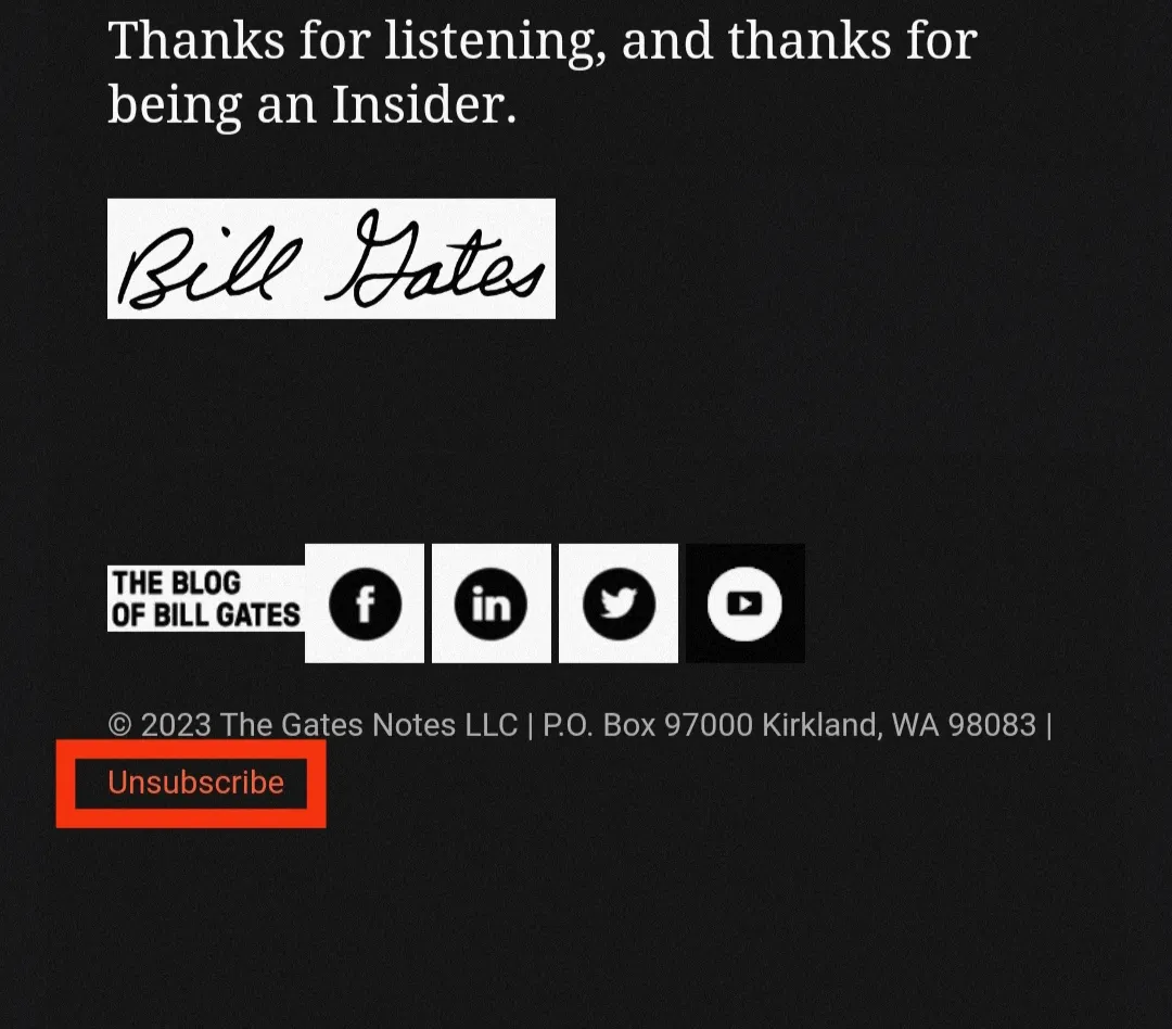 Pengguna yang ingin berhenti berlangganan email newsletter dapat menggunakan fitur "Unsubscribe".