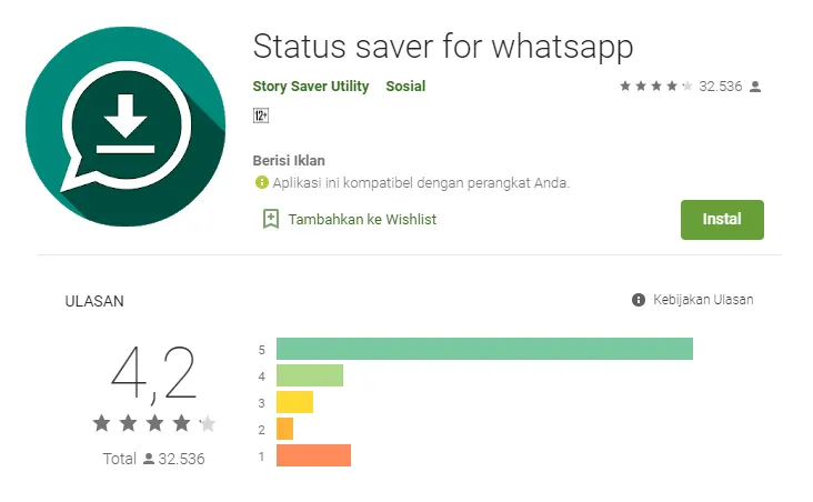 Kamu juga bisa menggunakan aplikasi pihak ke tiga untuk mengunduh foto atau video di story WhatsApp.