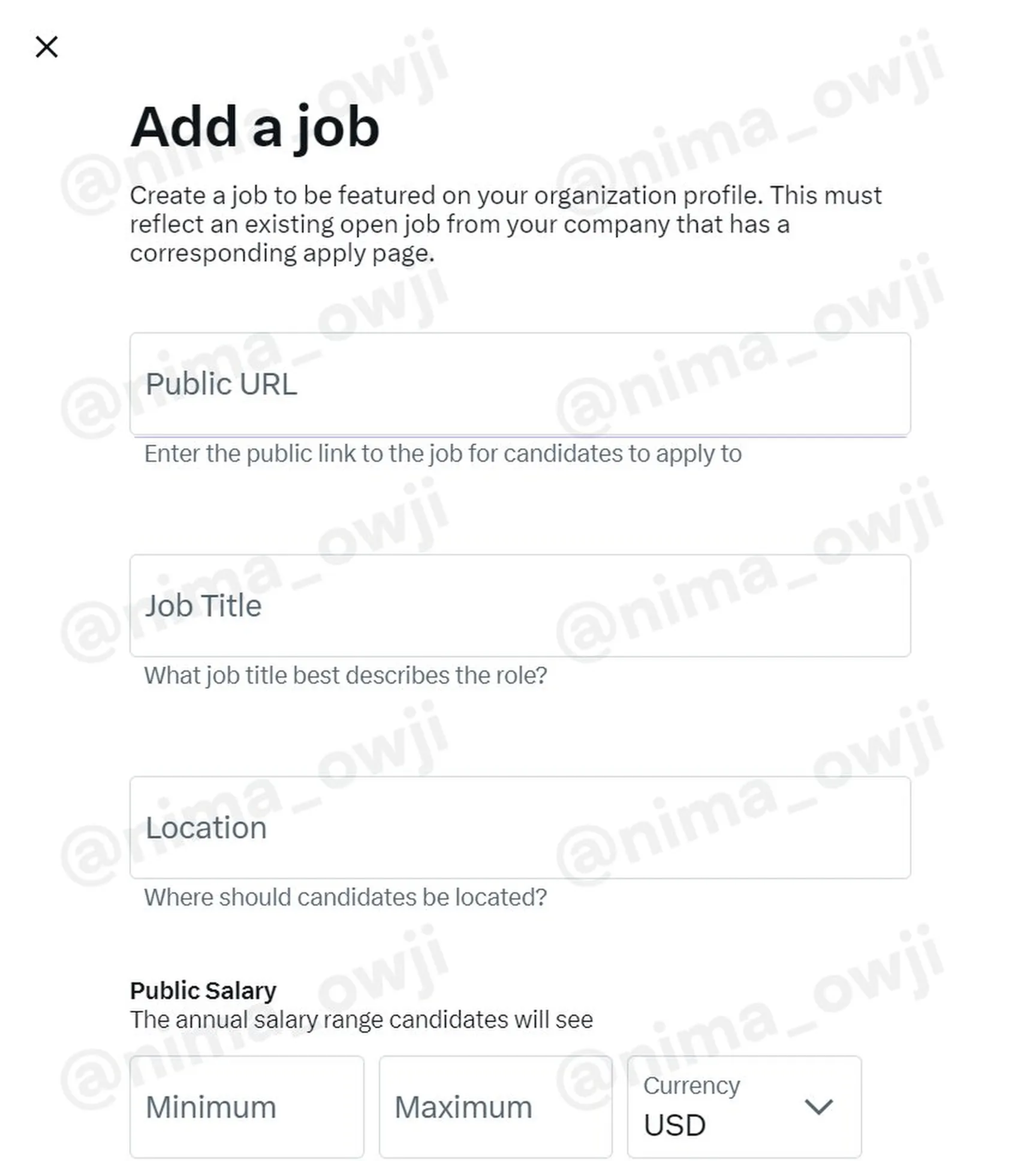 Lebih lanjut, lowongan pekerjaan tersbut akan ditampilkan pada profil Twitter perusahaan, dengan link (tautan) kembali ke halaman lamaran di situs web mereka (atau penyedia pihak ketiga). Fitur ini akan menampilkan daftar pekerjaan beserta informasi gaji yang terkait, sehingga pengguna dapat mencari peluang kerja yang sesuai dengan kebutuhan mereka.