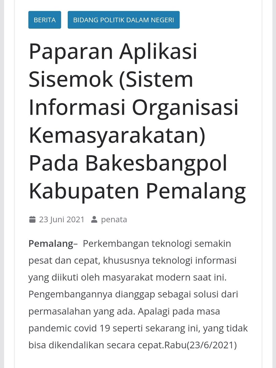 SiSemok adalah singkatan dari Sistem Informasi Organisasi Kemasyarakatan. Aplikasi ini merupakan platform berbasis situs yang dibuat oleh Kabupaten Pemalang, Jawa Tengah. Tujuannya adalah memberi pelayanan pengajuan terkait ormas, partai politik serta yayasan di wilayah tersebut. "Dengan menggunakan aplikasi ini diharapkan mempercepat proses," dikutip dari situs Pemkab Pemalang, pada 2021. Pengembangan aplikasi ini juga bersamaaan dengan momen pandemi Covid-19, saat muncul banyak imbauan buat menjauhi kontak langsung dan tinggal di rumah.