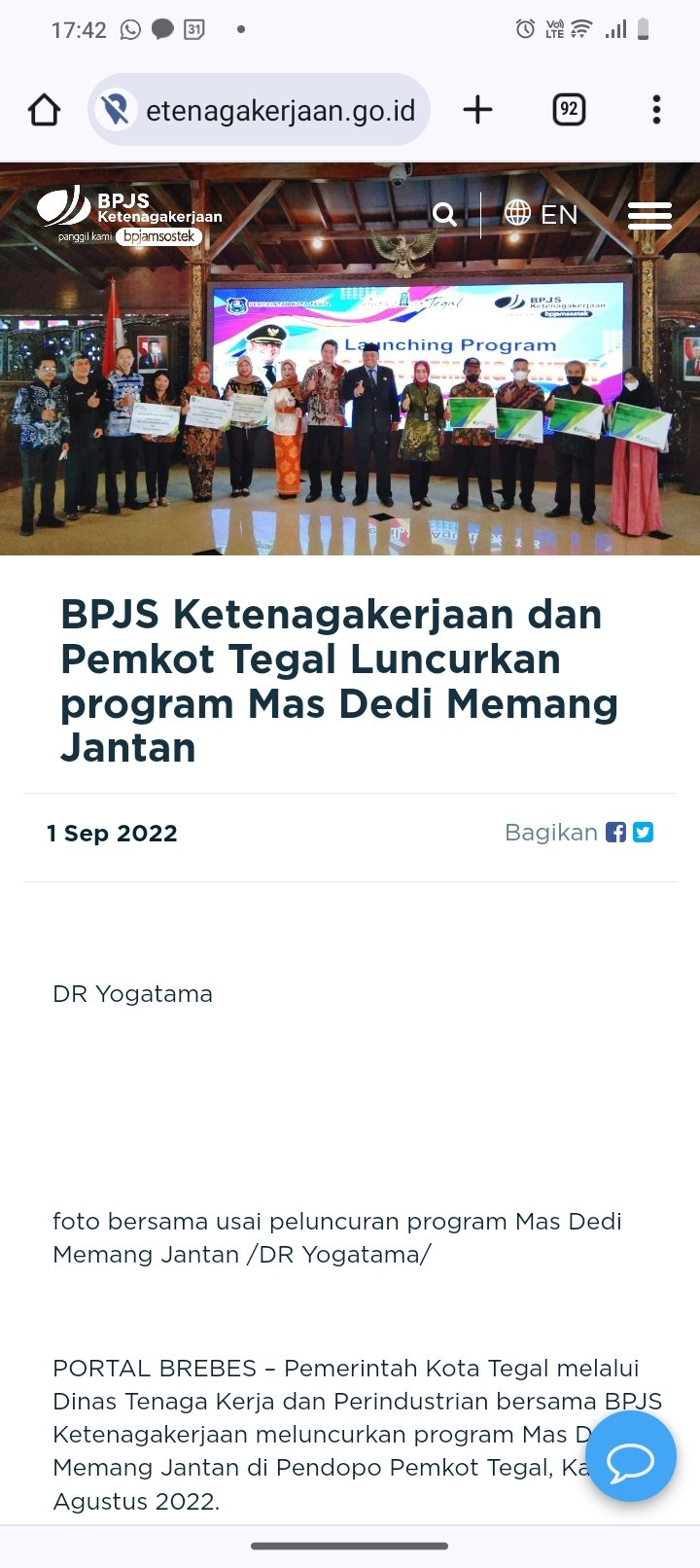 Mas Dedi Memang Jantan merupakan salah satu program unggulan yang dikelola oleh BPJS Ketenagakejaan bekerja sama dengan Pemerintah Kota Tegal, Jawa Tengah.