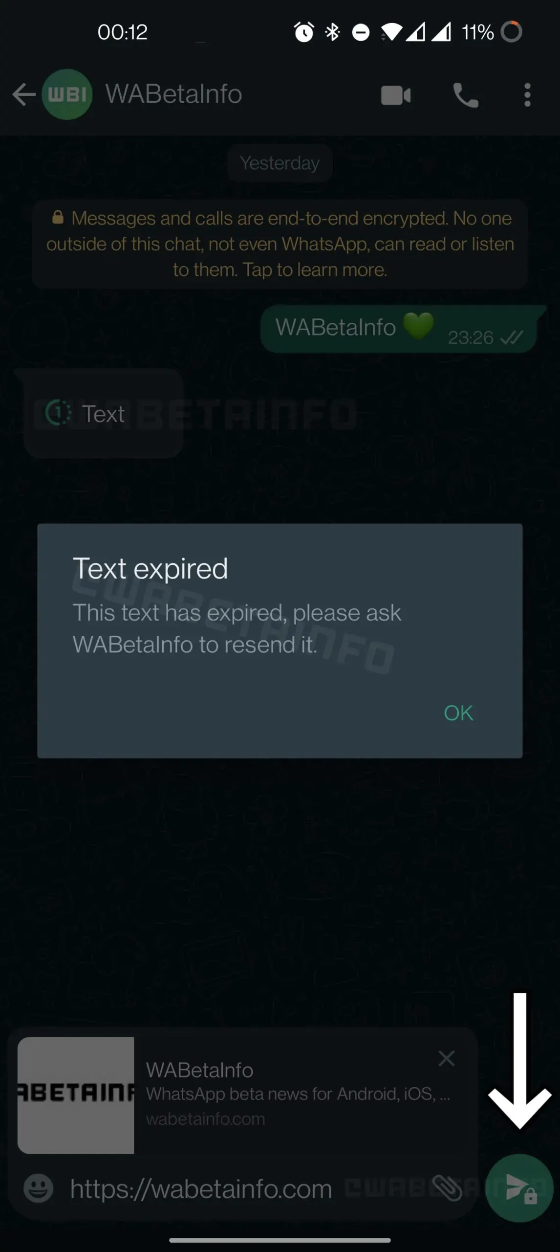 Gambar yang diperlihatkan WABetaInfo ini adalah gambaran ketika fitur view once text dapat digunakan oleh pengguna. Untuk menggunakan fitur view once text, pengguna bisa mengirim pesan yang terdapat icon gembok di tombol send.