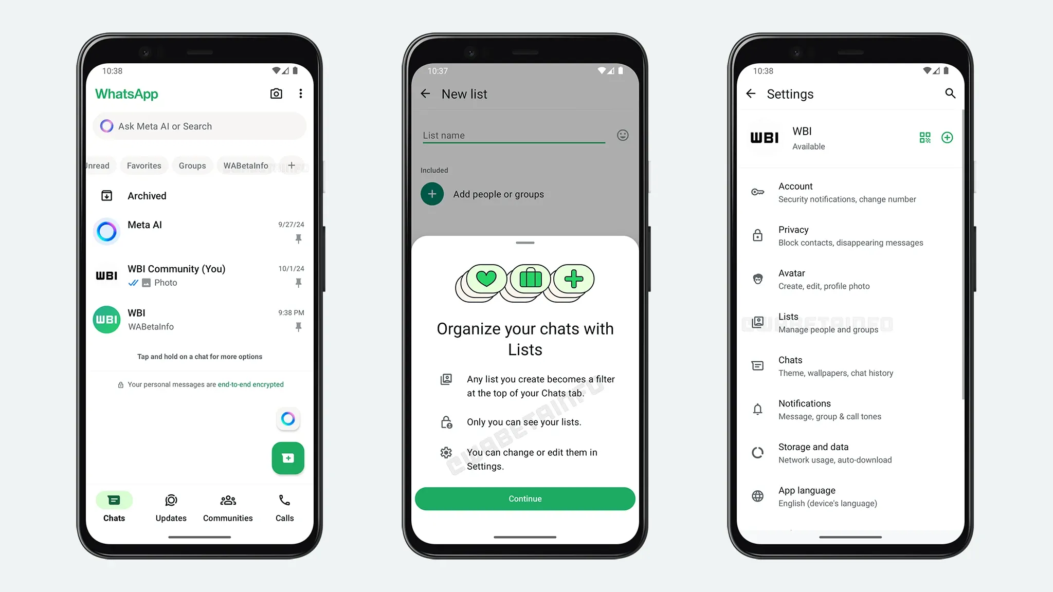 Pengguna dapat memfilter obrolan mereka dengan membuat daftar pribadi yang hanya menampilkan kontak dan grup pilihan, sehingga memudahkan mereka dalam mencari pesan-pesan penting.