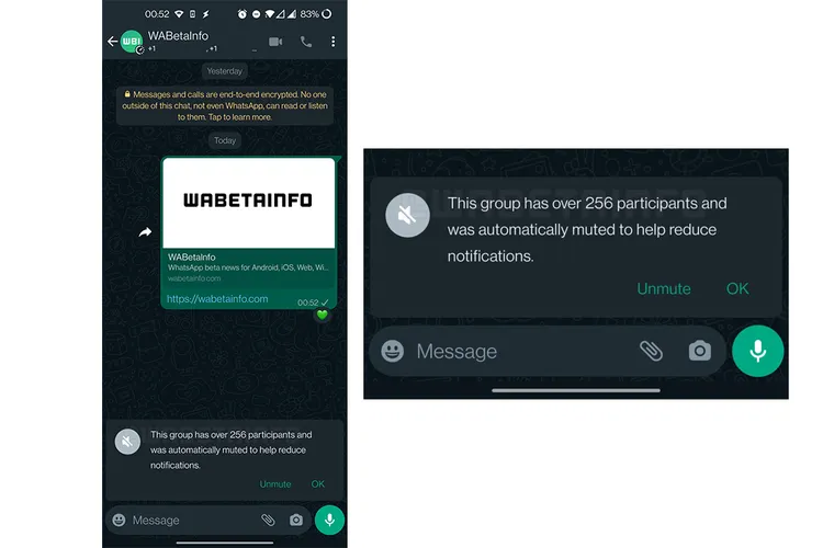 "Grup ini berisi lebih dari 256 partisipan dan telah dibisukan secara otomatis untuk mengurangi notifikasi," isi peringatan tersebut.