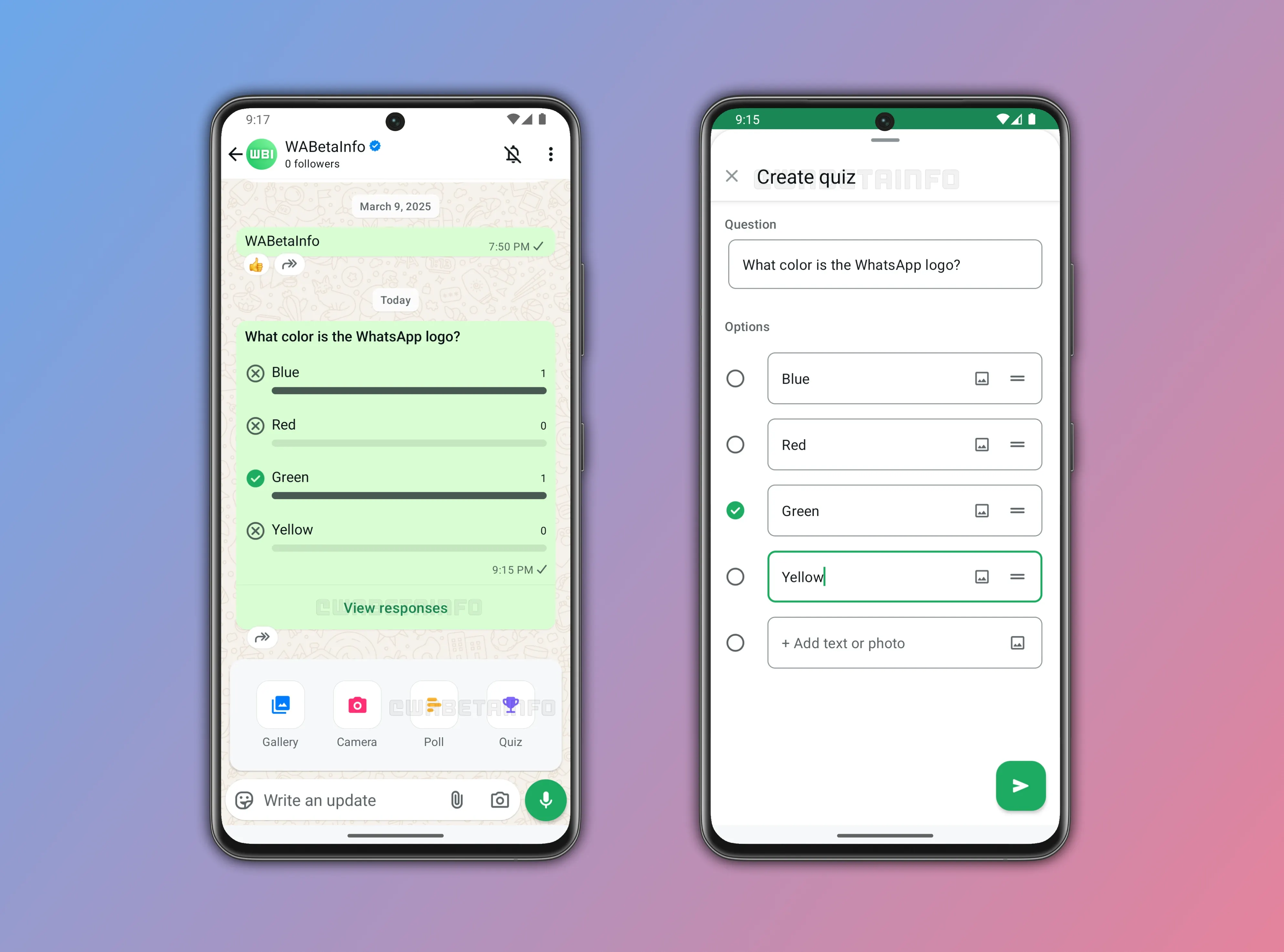 Menurut laporan dari WABetaInfo, fitur Channel Quiz ditemukan dalam versi uji coba WhatsApp Beta untuk Android 2.25.30.5. Melalui fitur ini, admin kanal dapat membuat kuis langsung di dalam kanal WhatsApp mereka. Berbeda dengan fitur “polling” yang sudah lebih dulu hadir, Channel Quiz memungkinkan admin menyusun pertanyaan lengkap dengan beberapa pilihan jawaban dan menampilkan hasilnya secara interaktif.