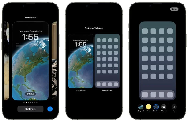 Saat mengetuk antarmuka "Sesuaikan" di Layar Terkunci, sekarang ada opsi untuk memilih antara menyesuaikan Layar Terkunci atau Layar Utama , bukan hanya Layar Terkunci. Ini membuatnya lebih mudah untuk menyesuaikan tampilan iPhone dari satu tempat tanpa harus melalui beberapa langkah.