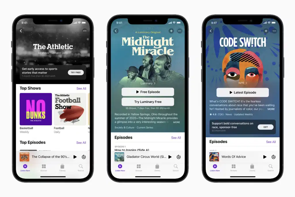 Podcast dengan opsi untuk langganan berbayar (bulanan atau tahunan) pada Podcast individu.