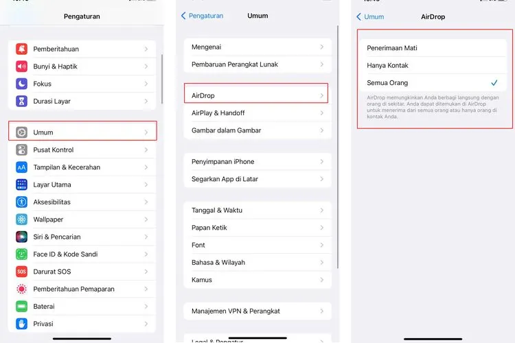 Di opsi tersebut, bakal muncul pengaturan visibilitas AirDrop dengan pilihan tindakan seperti yang dijelaskan datas.
