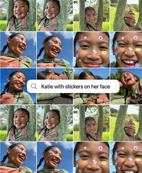 Kini, ketika mencari foto dan video pengguna dimudahkan untuk mencari dengan mendeskripsikan seperti apa foto dan video yang ingin ditemukan. Apple Intelligence bahkan dapat menemukan momen yang sejenis dalam klip video yang sesuai dengan deskripsi pengguna.