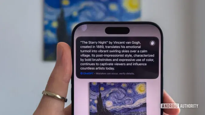 Siri dengan integrasi ChatGPT mendukung respons di layar, sehingga pengguna dapat melakukan hal-hal seperti menanyakan "apa yang ada di foto ini?" saat pengguna melihat sebuah gambar.