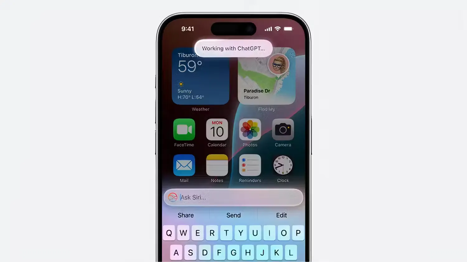 Fitur selanjutnya adalah integrasi antara ChatGPT dan Siri. Apple telah bekerja sama dengan OpenAI untuk mengintegrasikan layanan ChatGPT pada fitur Siri. Jika pengguna menanyakan sesuatu kepada Siri yang tidak dapat dijawabnya, dia akan menanyakan apakah boleh meminta bantuan ChatGPT. Tanggapannya kemudian akan dibuat dengan ChatGPT 4-o, tanpa perlu berlangganan ChatGPT. Jika pengguna memiliki langganan berbayar, maka dapat menggunakan fitur tambahan yang telah dibayar dari dalam Siri.