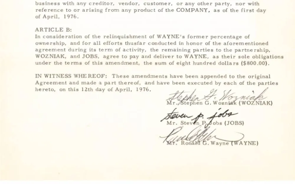 Kemitraan awal ini tidak berlangsung lama. Hanya 12 hari setelah penandatanganan, Wayne memutuskan untuk mundur. Alasannya? Ia merasa khawatir dengan potensi risiko finansial yang mengintai. Sebagai kompensasi, ia menerima US$800 (sekitar Rp12 juta saat ini) melalui amandemen kontrak, dan menjual seluruh kepemilikan sahamnya. Keputusan ini secara historis dicatat sebagai salah satu keputusan finansial paling disayangkan, sebab Wayne melewatkan potensi kekayaan yang kini bernilai miliaran dolar. Dokumen dengan tanda tangan manual yang telah memudar ini kini menjadi artefak langka yang merekam momen kelahiran salah satu perusahaan paling berpengaruh di dunia.
