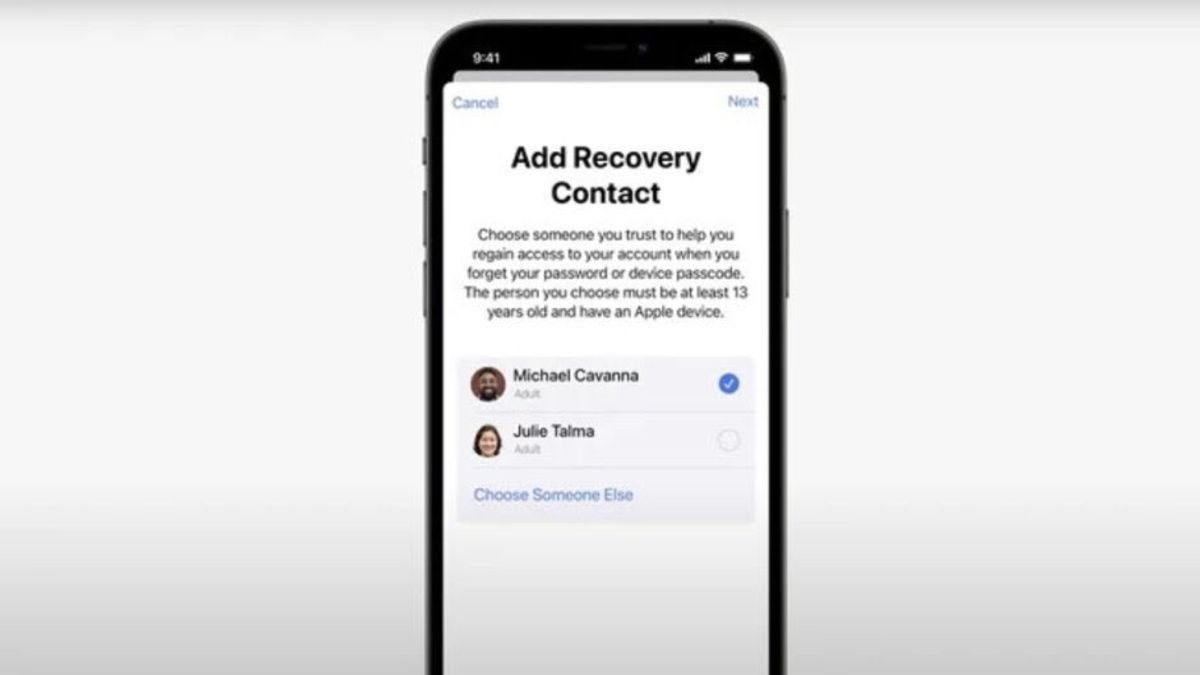 Recovery Contact, dia akan mendapatkan kode di iPhone miliknya secara otomatis