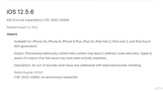 Dilansir dari GSM Arena (1/9/2022), Apple mendapatkan laporan bahwa masalah ini mungkin telah dieksploitasi secara aktif.