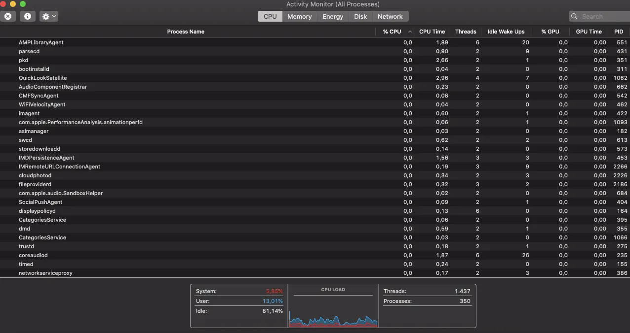 Activity Monitor adalah jendela dimana kamu dapat menemukan informasi terkait semua hal yang sedang berjalan di mesin MacBook pada waktu tertentu. Mulai dari informasi aplikasi apa saja yang sedang terbuka hingga operasi di belakang layar akan tersedia melalui jendela ini. Jika kamu melihat aplikasi terbuka dan saat ini tidak digunakan, tutup aplikasi tersebut agar sebagian memori atau RAM dapat tersimpan.