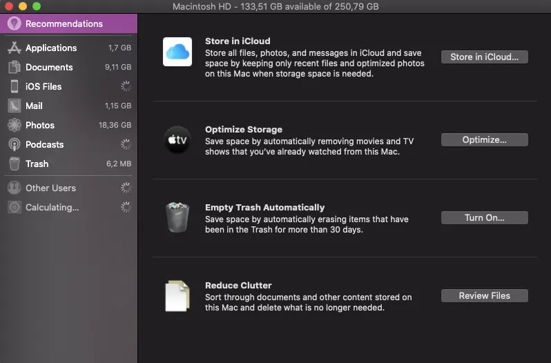 Salah satu cara termudah agar MacBook mempunyai kinerja yang cepat adalah dengan mengosongkan penyimpanan. Hal tersebut disebabkan karena semakin berat dan banyak pengggunaan SSD, semakin lambat ia akan bekerja. Berikut cara mengosongkan penyimpanan: