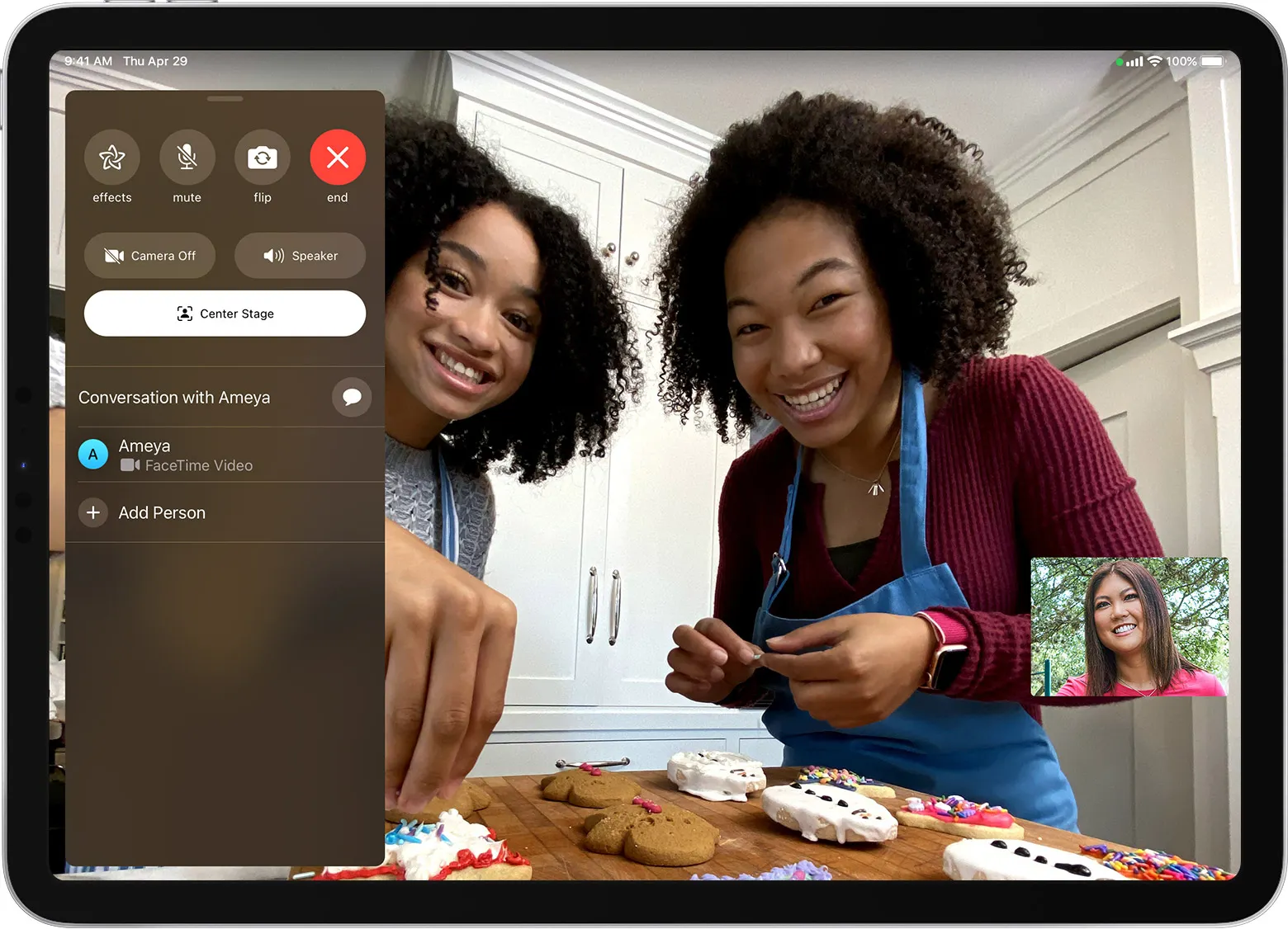 iPad Mini terbaru dan iPad entry-level Apple dapat membantu mengatasi kecanggungan tersebut dengan Center Stage, yakni alat zoom digital yang terpasang pada kamera wide-angle iPad terbaru untuk secara otomatis menjaga wajah kita dalam bingkai.