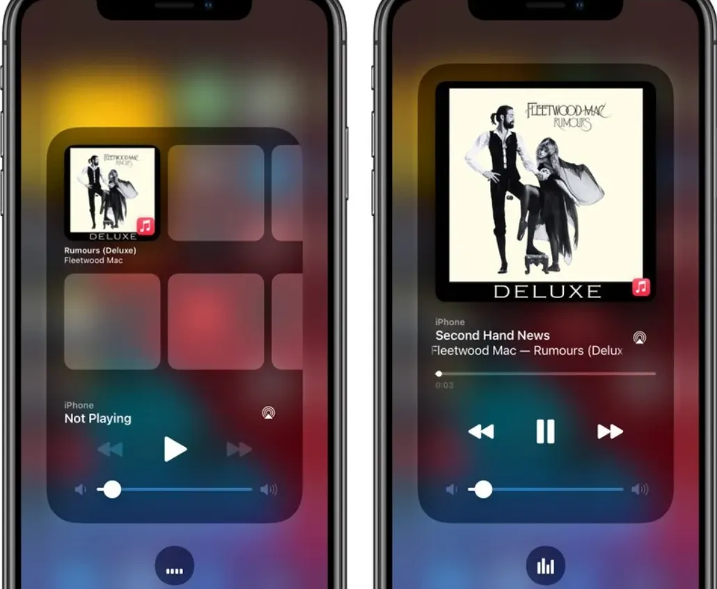 Ada widget "Now Playing" yang didesain ulang di "Control Center", mencantumkan album yang terakhir diputar dan mungkin ingin Anda dengarkan lagi. Ada juga interface yang didesain ulang untuk AirPlay.