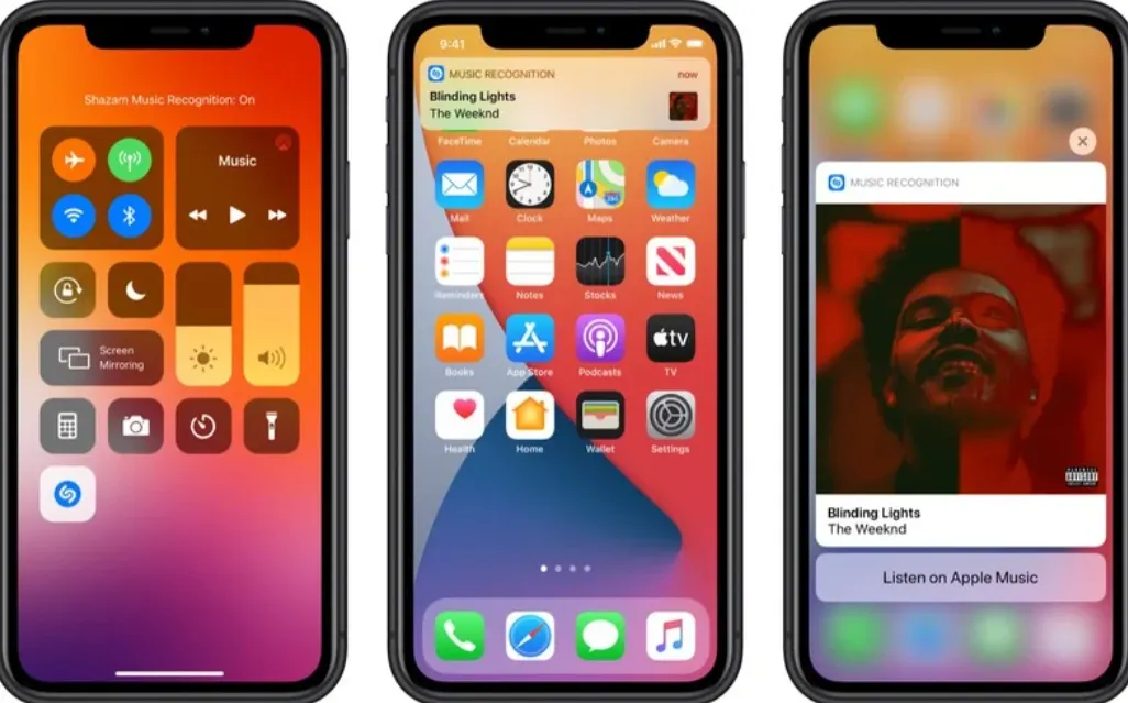Pada "Control Center", ada tombol "Music Recognition" baru yang mengintegrasikan integrasi aplikasi Shazam milik Apple di sistem operasi iOS. "Music Recognition" memungkinkan Anda menemukan musik yang diputar di sekitar Anda maupun yang diputar di aplikasi, bahkan saat Anda mengenakan AirPods.