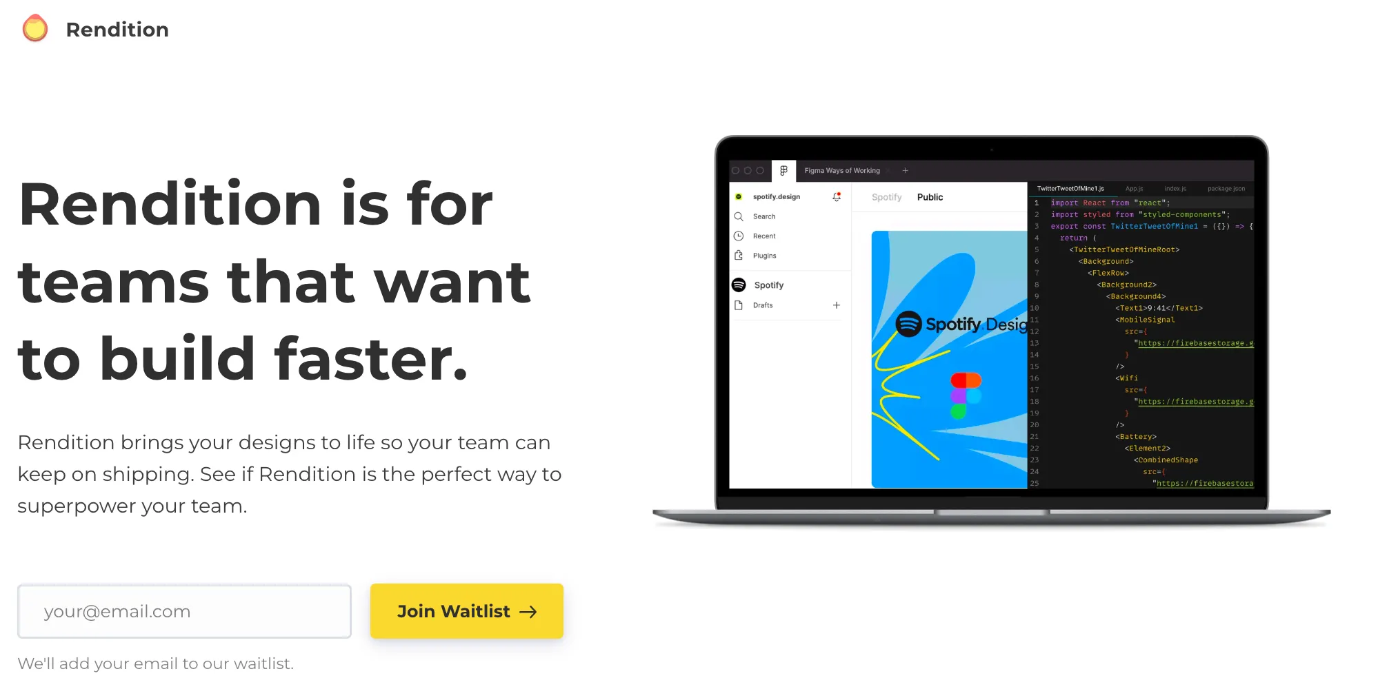Rendition mengubah desain Figma menjadi kode React berkualitas tinggi, menggunakan pendekatan hibrida kompilator dan model pembelajaran mesin (machine learning models). Automasi ini menghilangkan proses pengkodean manual, membebaskan waktu para desainer untuk pekerjaan yang lebih kreatif. Rendition juga membantu meningkatkan kualitas kode dengan mengidentifikasi dan memperbaiki kesalahan umum, yang pada akhirnya mempercepat proses pengembangan.