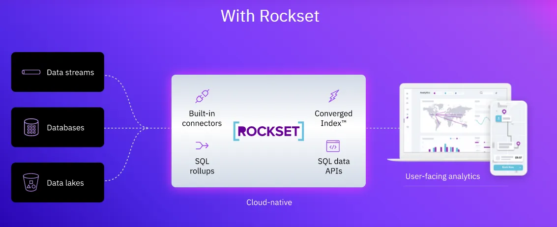 Rockset adalah sistem cloud yang mampu melakukan analitik real-time dengan cepat. Rockset mengklaim produknya memungkinkan pengguna untuk mencari, menggabungkan, dan mengumpulkan data dalam skala besar dengan waktu respons sepersekian detik.