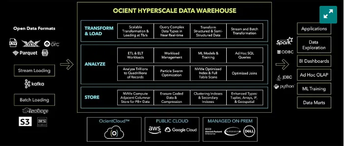 Ocient Hyperscale Data Warehouse dirancang untuk mengubah, memuat, dan menganalisis data berukuran petabyte hingga exabyte dalam waktu interaktif.