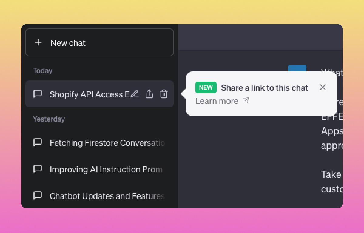 OpenAI mendengarkan masukan ini dan mengumumkan bahwa pengguna ChatGPT akan dapat menggunakan fitur berbagi ini. Fitur tersebut sedang dalam proses peluncuran dan beberapa pelanggan sudah dapat mengaksesnya.