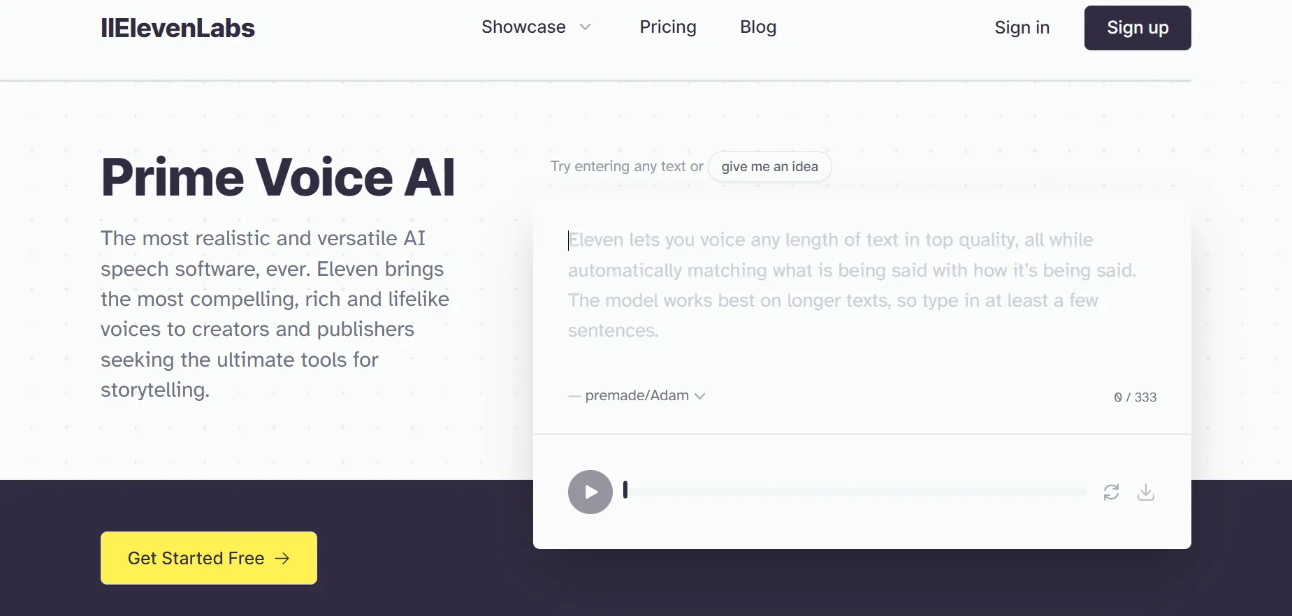 ElevenLabs.id adalah platform yang menggenerasikan audio dari text. Yang membuat platform ini menjadi unik yaitu adalah ElevenLabs.id menggunakan text-to-speech (TTS) yang berhasil membuat audio dengan intonasi dan infleksi yang terdengar natural. Dengan tools AI satu ini, kamu dapat memanfaatkannya untuk melakukan storytelling bagi content creator, membacakan text berita agar beritamu lebih menarik bagi para pembaca, dan dapat mengidupkan cerita dengan audio books.