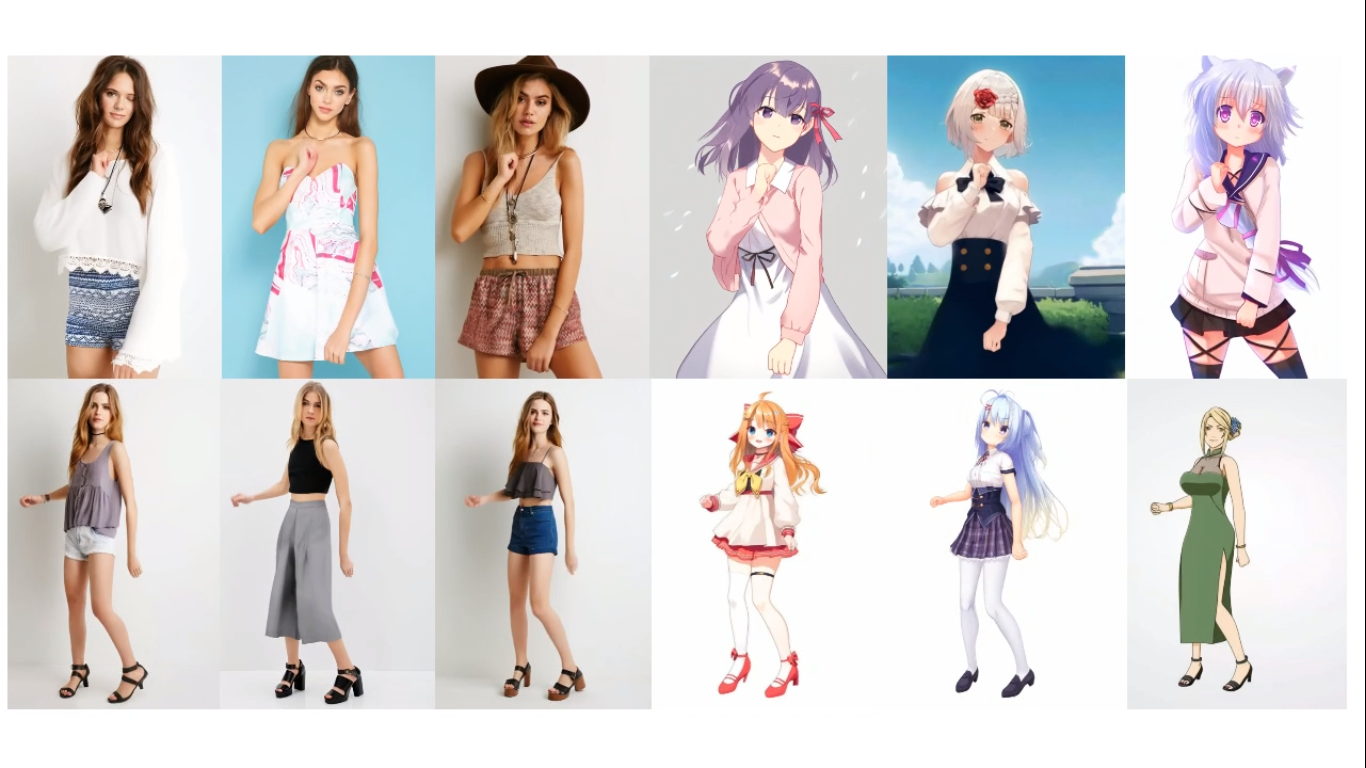 Objek yang dapat dijadikan karakter animasi oleh AI Animate Anyone meliputi sebuah figur manusia seluruh tubuh, potret setengah badan, karakter kartun, bahkan figur humanoid.