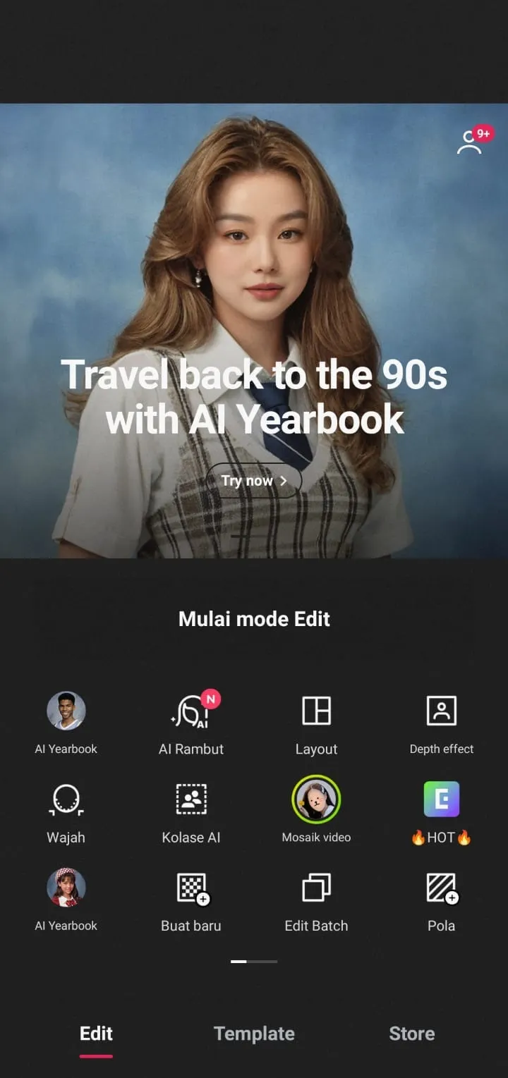 mengajak penggunanya untuk bernostalgia, sebab foto yang dihasilkan akan menampilkan foto ala buku tahunan sekolah yang bernuansa vintage. Dengan fitur AI, foto akan diedit dengan wajah, gaya berpakaian, hingga model rambut di era 90-an.