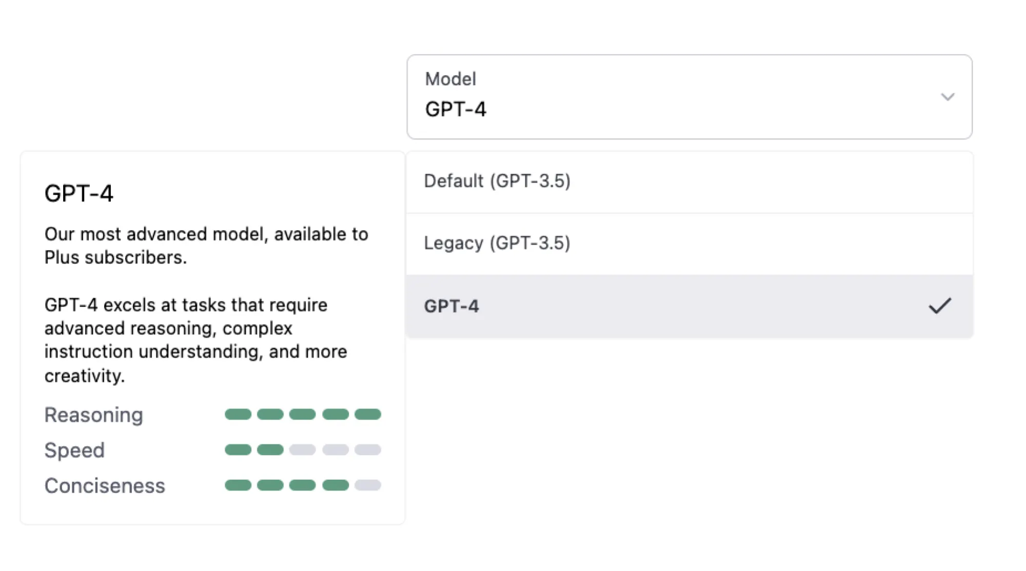 Ketika kamu memulai obrolan baru, ada pilihan menu untuk menggunakan model lama atau GPT-4. Namun, kamu harus memperhatikan peringatan dari OpenAI bahwa GPT-4 tidak secepat model-model sebelumnya, sehingga kecepatan mengetikmu mungkin akan sedikit terganggu.