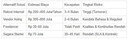 Perbandingan Nilai: Sagara vs. Membangun Tim Sendiri