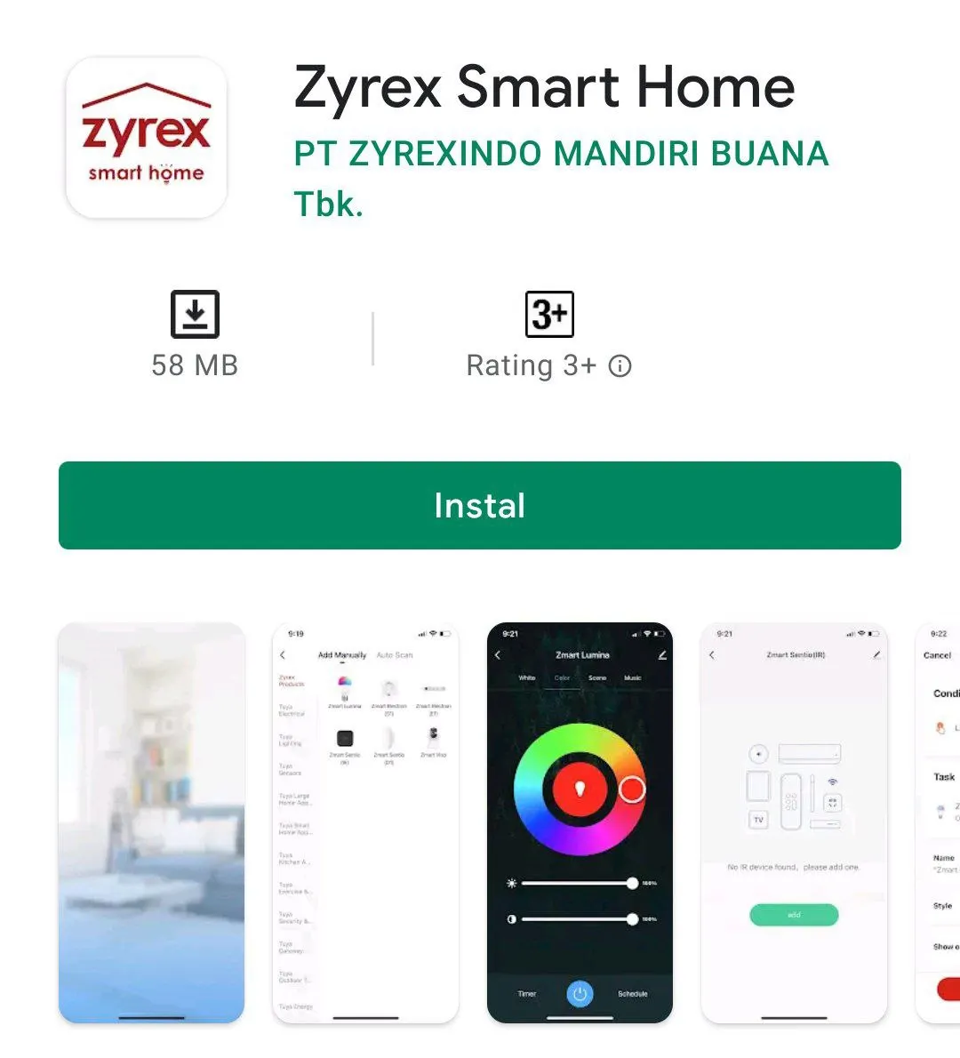 (Android) atau App Store (iOS) dengan mencari nama "Zyrex Smart Home",”
