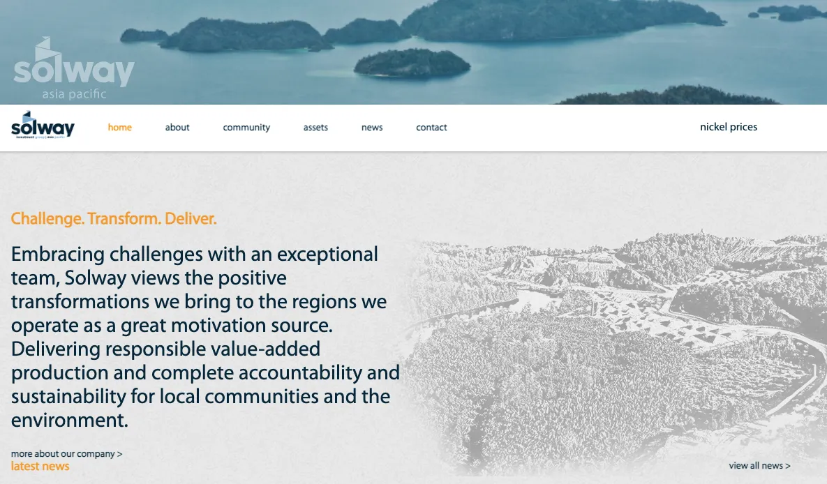 Solway Group fokus pada menambah nilai di seluruh rantai nilai, siklus hidup, dan aplikasi untuk logam nikel, tembaga, emas, dan perak yang penting untuk transisi global ke energi bersih, berkelanjutan, dan ramah lingkungan.