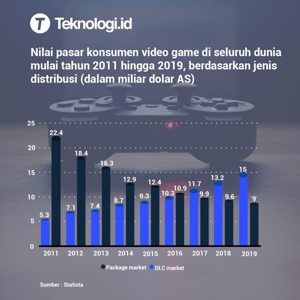 Artikel ini telah tayang di http://statista.com dengan judul "Video game consumer market value worldwide from 2011 to 2019, by distribution type (in billion U.S. dollars)", https://www.statista.com/statistics/292460/video-game-consumer-market-value-worldwide-platform/