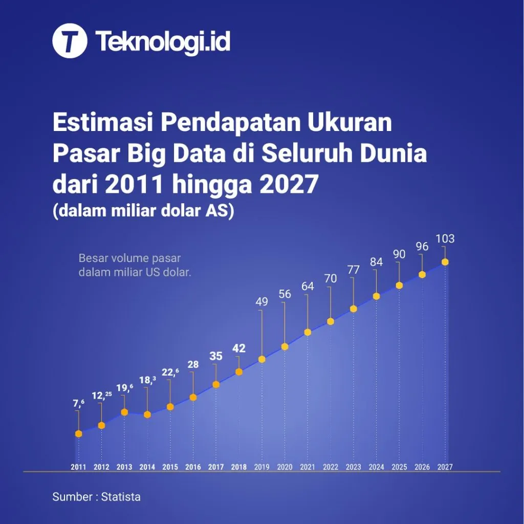 Bagan statistik di bawah ini menunjukkan perkiraan pendapatan untuk industri Big Data secara global dari 2011 hingga 2027. Pada tahun 2018, diproyeksikan ukuran pasar global Big Data