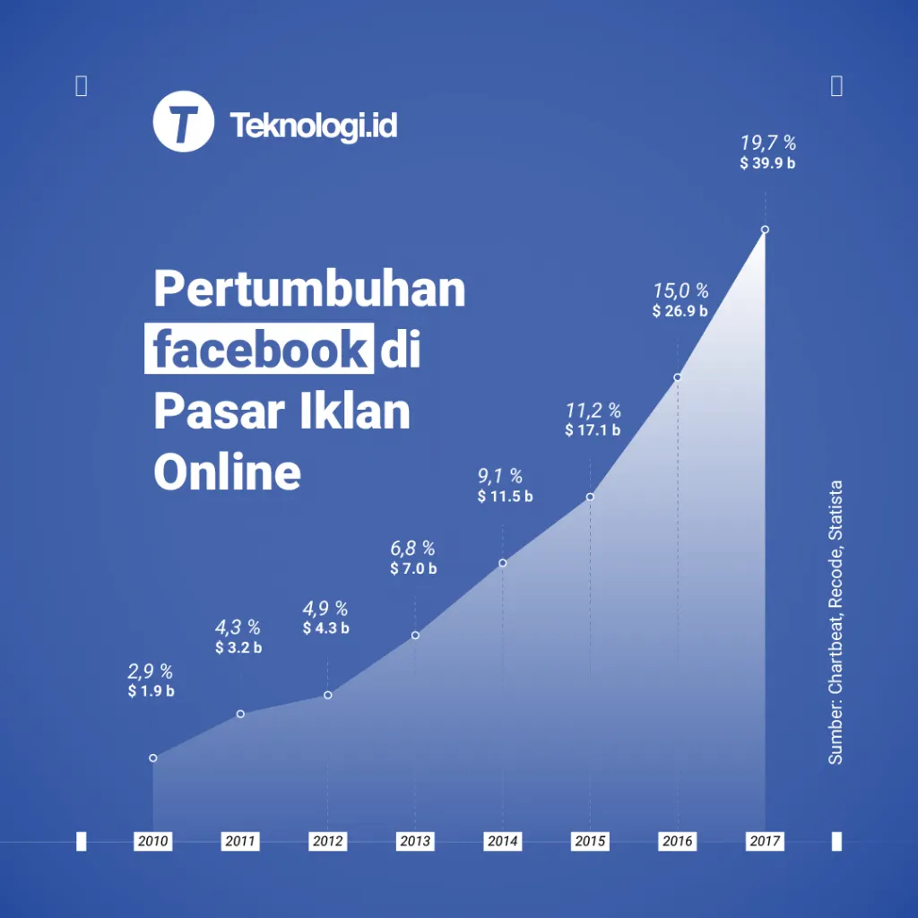 Berdasarkan data yang digambarkan bagan di bawah ini, iklan personalisasi Facebook merupakan model bisnis yang sukses menyumbang 20% persen pasar iklan online global kedua setelah Google. Dalam kurun waktu tujuh tahun yaitu dari mulai tahun 2010 hingga 2017 yang semula hanya menyumbang 3%, kini telah dapat menyaingi Google di pasar iklan online. Kasus yang masih menjadi perdebatan ini, tentu saja membuat para pemegang saham khawatir karena hingga Senin, 26 Maret 2018 saham Facebook telah turun hingga 20%. Berdasarkan kasus ini, kita akan lihat apakah pada tahun 2018, bisnis iklan online Facebook akan menurun.
